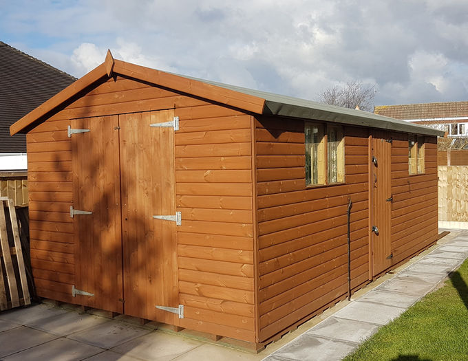 A STURDY SHED IN A HUGE RANGE OF SIZES. IDEAL FOR STORAGE OR FOR WORKING IN WITH PLENTY OF HEADROOM AND A LARGE VARIETY OF DOOR AND WINDOW POSITIONS